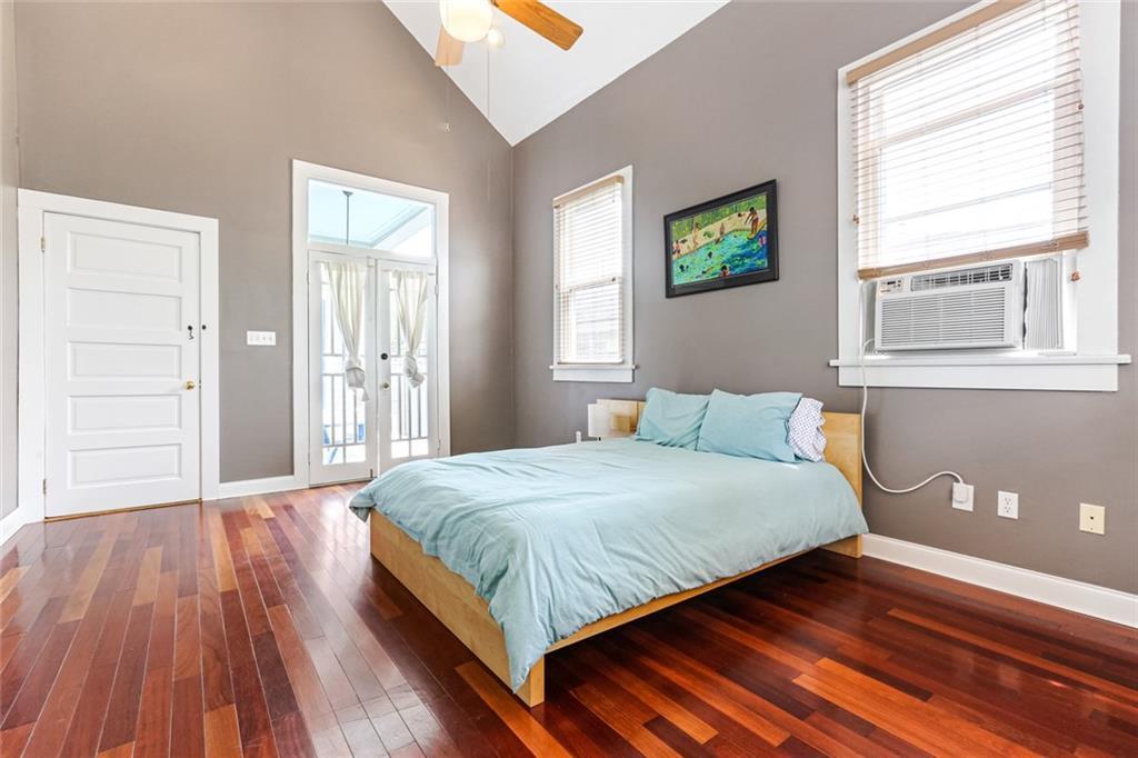 Gorgeous renovation completed in 2016, with modern design features & historic charm. 12 ft ceilings make this home open, airy, and full of natural light. The expansive Primary Suite features an enormous closet with custom built shelving & spacious ensuite with dual shower head as well as dual shower entrance. Hardwood floors throughout, kitchen features stainless steel appliances & granite countertops. Automatic Gated Off Street Parking fits 2 vehicles. X Flood zone.